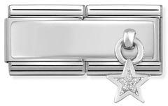 Composable DOUBLE Classic CHARMS steel, enamel and silver 925 (01_White Wing)