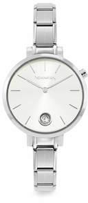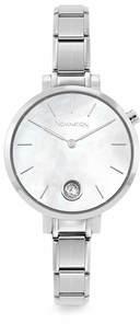 PARIS watch with steel band ROUND with zircon (008_WHITE mother-of-pearl)