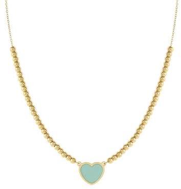 EMOSFERE necklace in steel with YELLOW GOLD fin, and enamel (002_HEART GREEN WATER) |